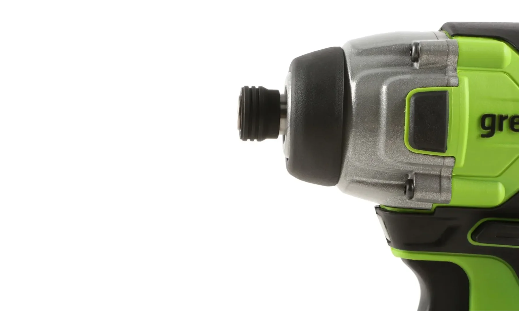 Винтоверт оснащается быстро зажимным патроном под шестигранную биту размером 6 мм. Работает данная модель от 24V аккумулятора, напряжение которого на 30% выше принятого 18V стандарта, более того, этот аккумулятор может применяться для работы с более чем 20-ю устройствами, в том числе и садовым инструментом линейки GreenWorks G-24V.
