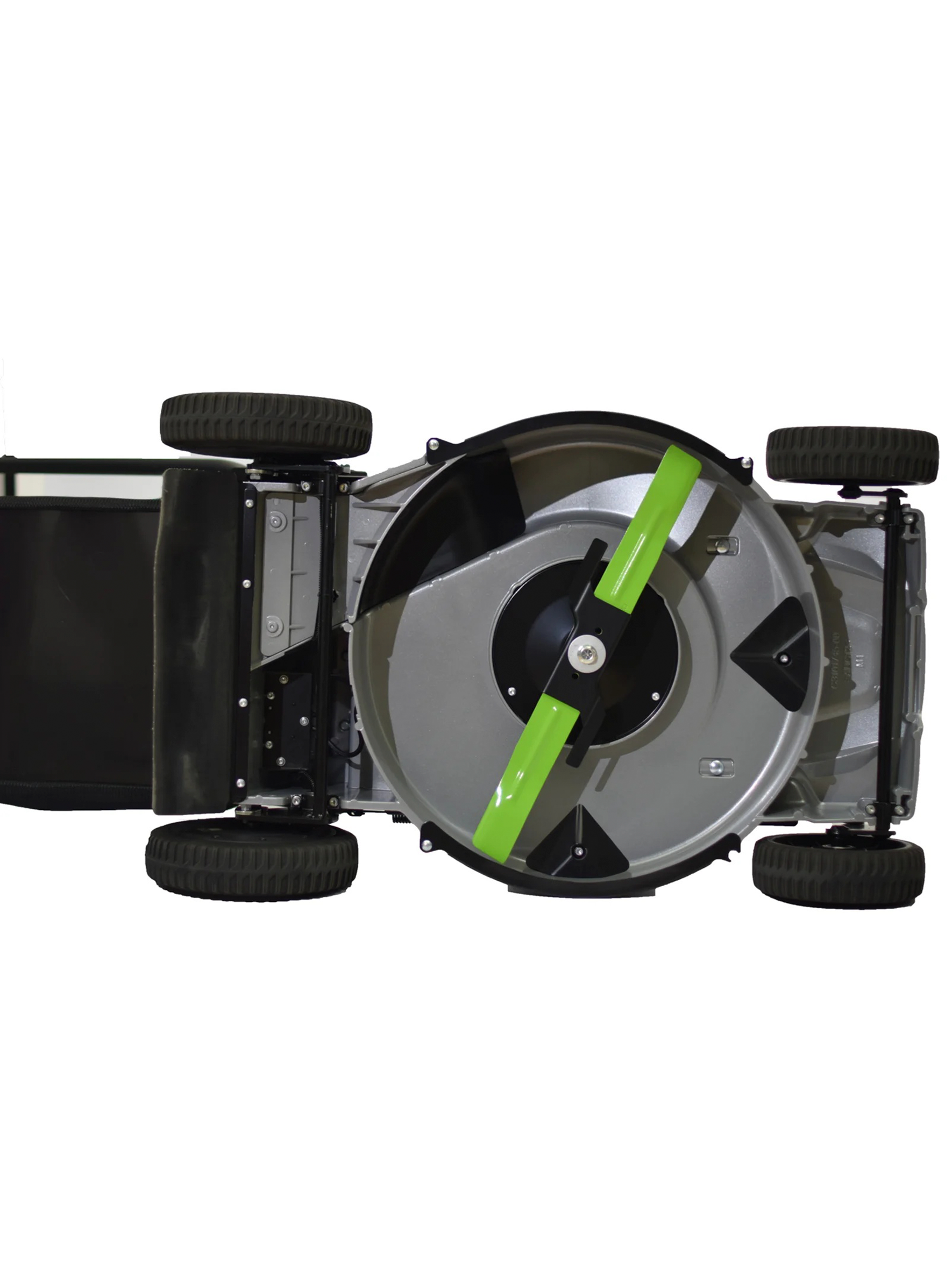 Устройство оснащено легкой, прочной и устойчивой к коррозии алюминиевой декой шириной 56 см. Толщина деки составляет 5 мм. Нож деки имеет прямой привод от мощного бесщеточного двигателя DigiPro™TM . В зависимости от задачи можно выбрать частоту вращения ножей: 2800 или 3000 об/мин или Авторежим, при котором обороты стартуют с отметки 2600 и далее регулируются автоматически. Устройство имеет две функции: сбор в травосборник и мульчирование.