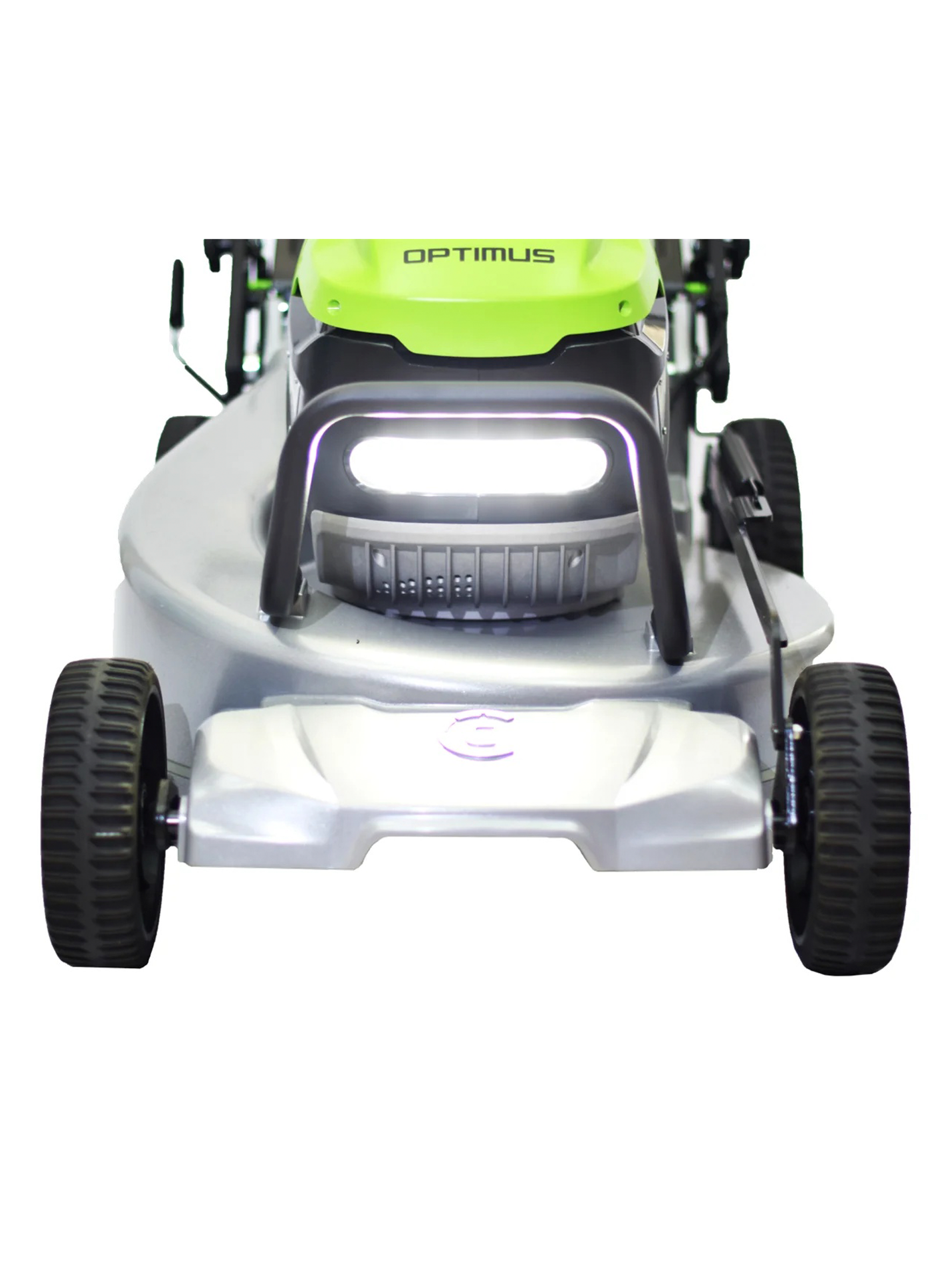 Мощная профессиональная самоходная газонокосилка платформы Greenworks Commercial 82V, серии OPTIMUSTM.Полноценная замена бензиновому инструменту. Максимальная мощность трех бесщеточных двигателей DigiPro™TM газонокосилки составляет 4,0 кВт (5,4 л.с.). Аккумуляторный инструмент обладает рядом неоспоримых преимуществ: надежные бесщёточные двигатели не требуют обслуживания; инструмент всегда готов к работе – запуск одной кнопкой; подготовка топливной смеси не требуется. Эксплуатационные расходы сводятся к стоимости электроэнергии и замене ножей по мере износа. Отсутствуют вредные выхлопы, работа существенно тише.