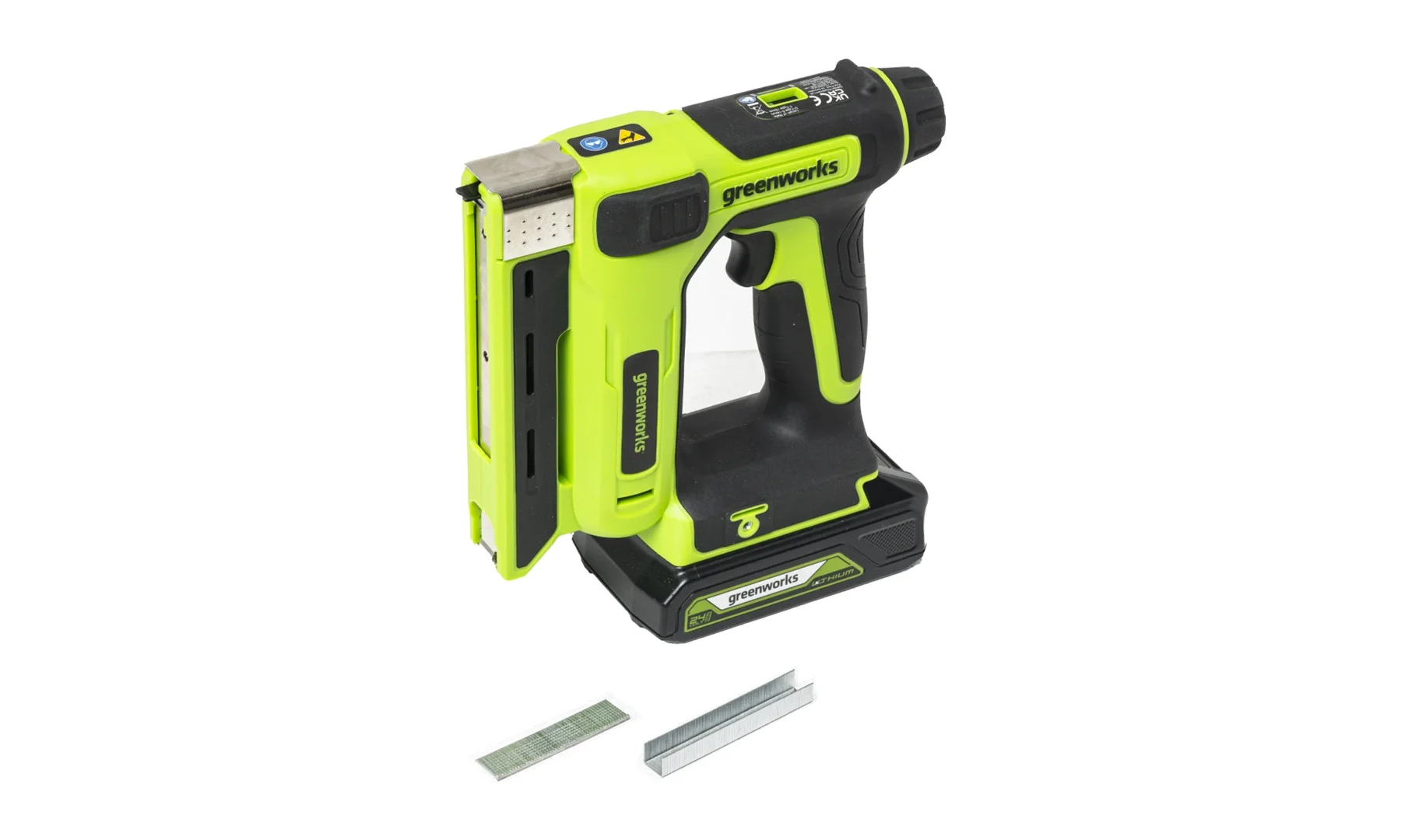 Степлер аккумуляторный Greenworks G24CS10 серии 24V предназначен для декоративных и отделочных работ.