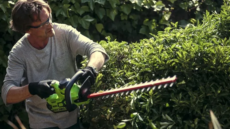 Аккумуляторный кусторез Greenworks G40HT61 40 вольт с легкостью справиться с подрезкой деревьев, кустарника или живой изгороди.