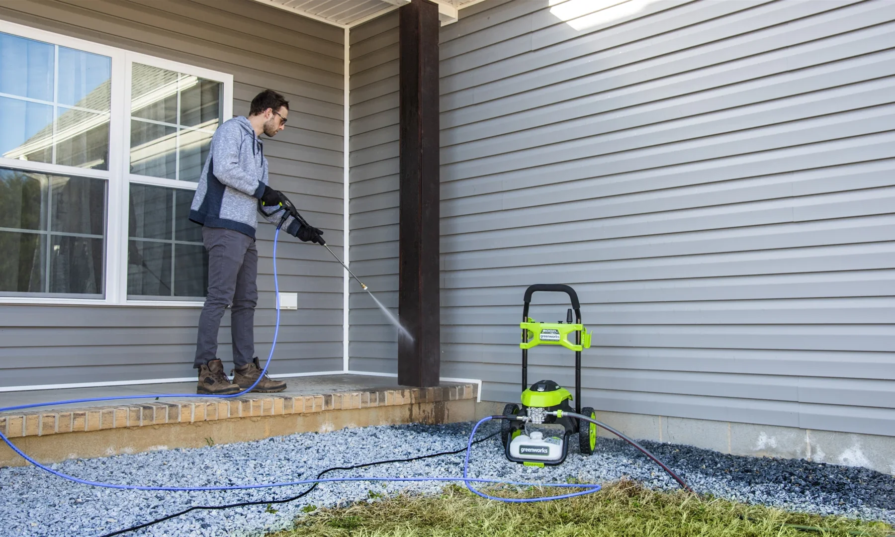 Мойка высокого давления Greenworks GHP2000 — достаточные давление и производительность для мойки легковых автомобилей, среде размерных внедорожников, мотоциклов, велосипедов, очистки придомовых территорий, дорожек, площадок, садового инвентаря.