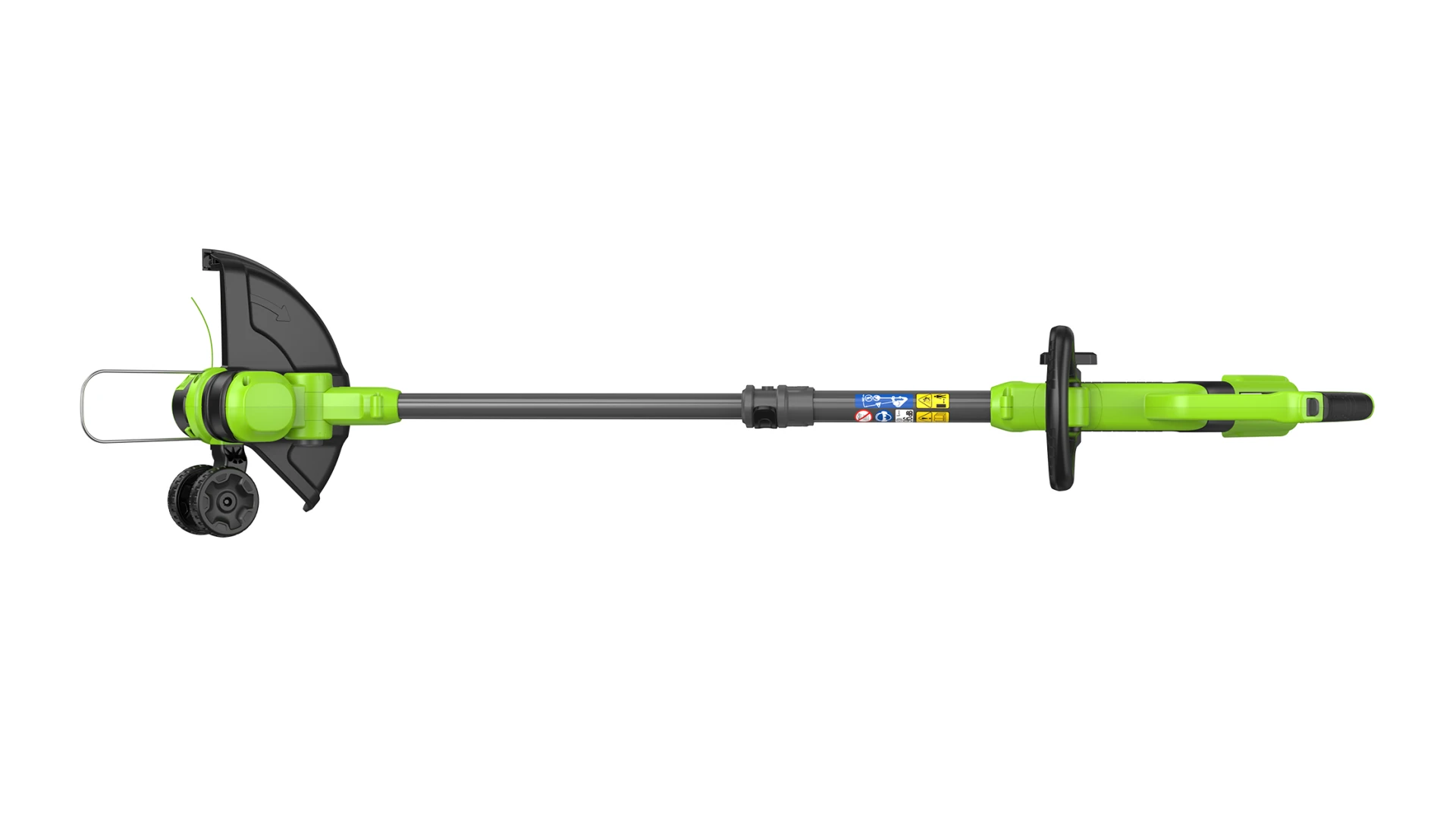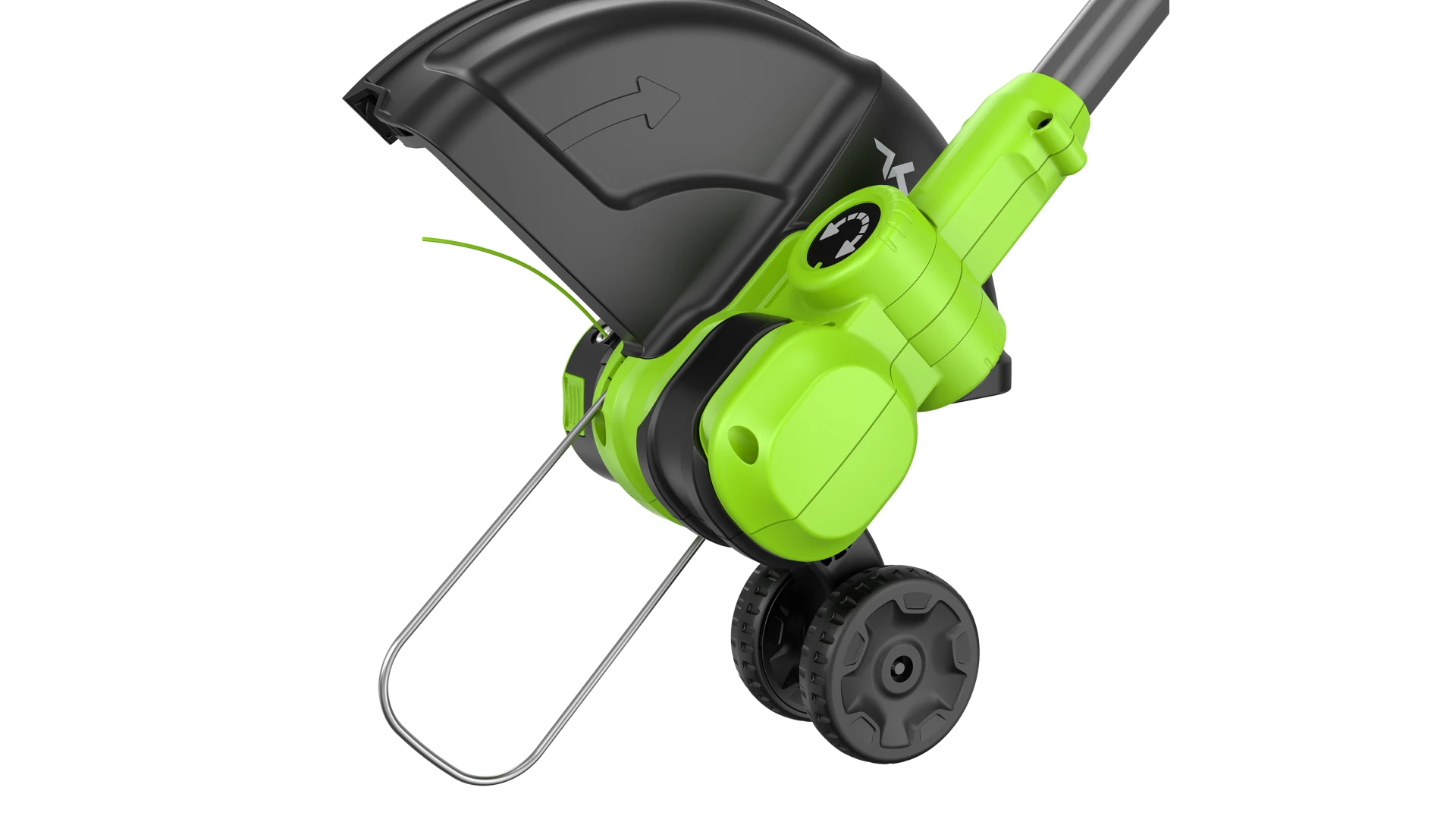 В режиме подрезки кромок режущая часть поворачивается вместе с нижней частью штанги и устанавливается вертикально, а расположенные на ней колеса предохраняют инструмент от касания земли. Кромка вашего газона всегда будет ровной и аккуратной.
