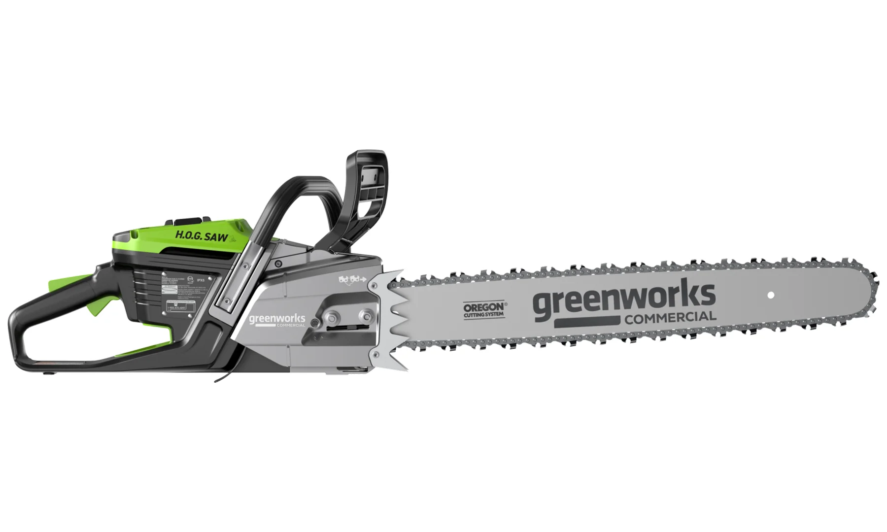 Благодаря высокой мощности 5,0 кВт (6,8 л.с.), она по эффективности сопоставима с бензопилами объёмом двигателя 80 куб. см.На начало 2025 года это самая мощная аккумуляторная пила на рынке (по собственным данным Greenworks).