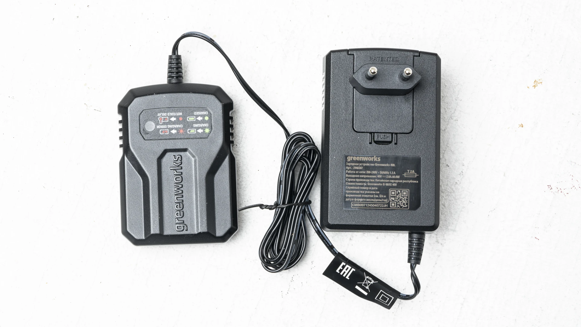 Универсальное зарядное устройство платформы Greenworks 40V.Предназначено для работы со всеми аккумуляторными батареями Greenworks 40V.